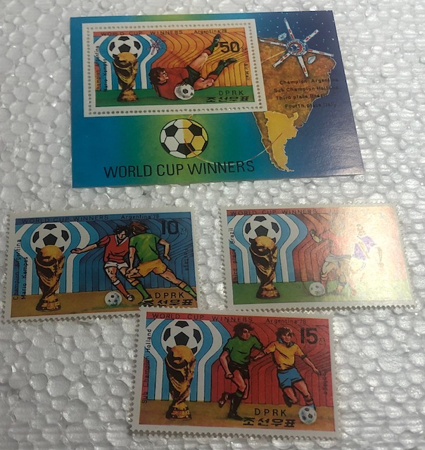 Блок + 4 марки. Надпечатка победители.